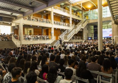 El decano José De Gregorio, quien encabezó la ceremonia, valoró el paso que están dando los nuevos estudiantes: «Están iniciando una etapa de la vida súper importante. Han tomado una gran decisión en venir a estudiar acá. Sus carreras les van a permitir adaptarse a cualquier parte del mundo y afrontar un escenario como el de la Inteligencia Artificial, que está transformando todo», señaló.