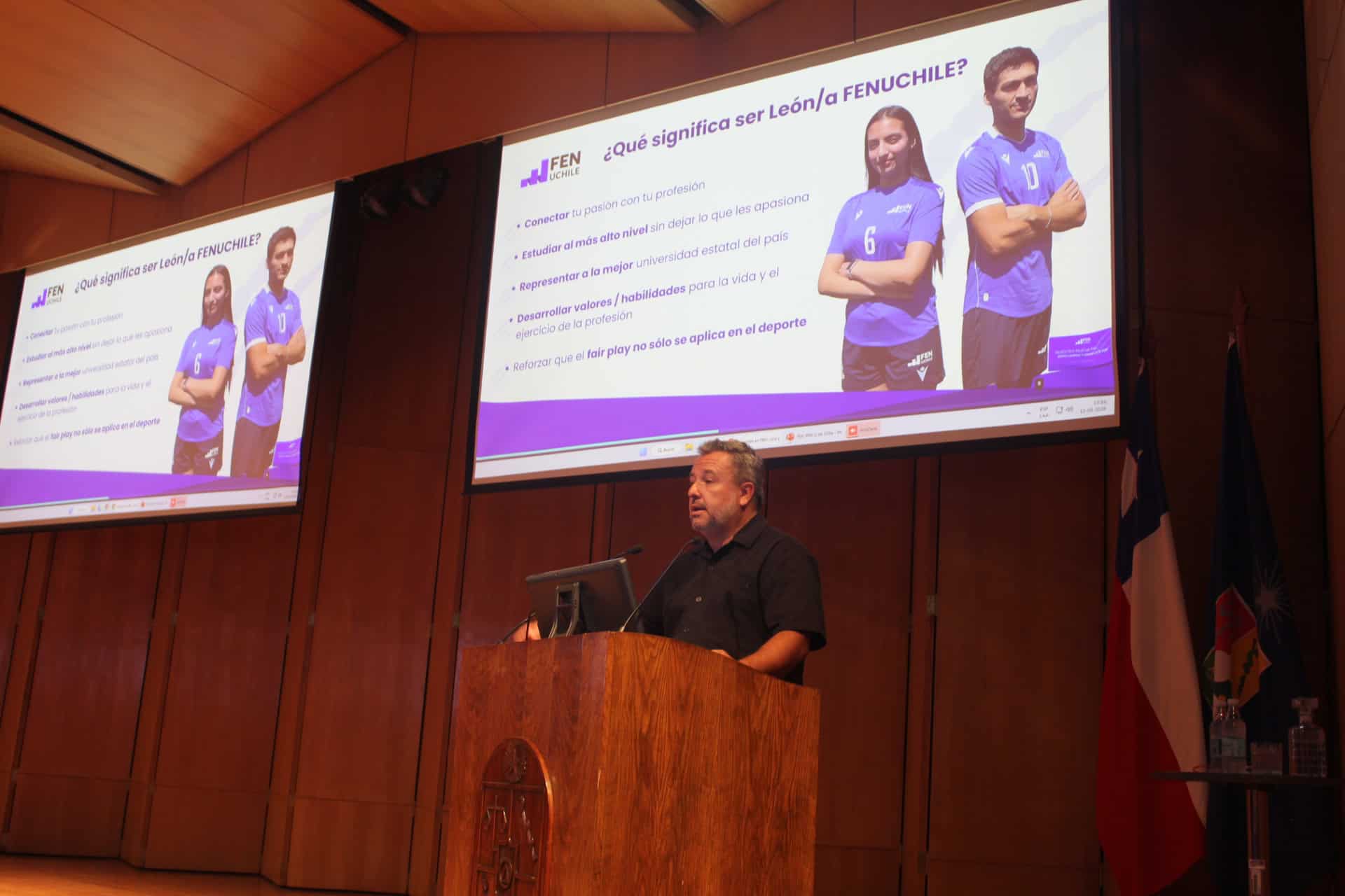 La actividad comenzó con la intervención de Javier Chacón Rojas, Jefe de la Unidad de Deportes y Formación Integral, quien analizó el panorama actual de la Facultad, destacando la presencia creciente de deportistas de alto rendimiento en las aulas.