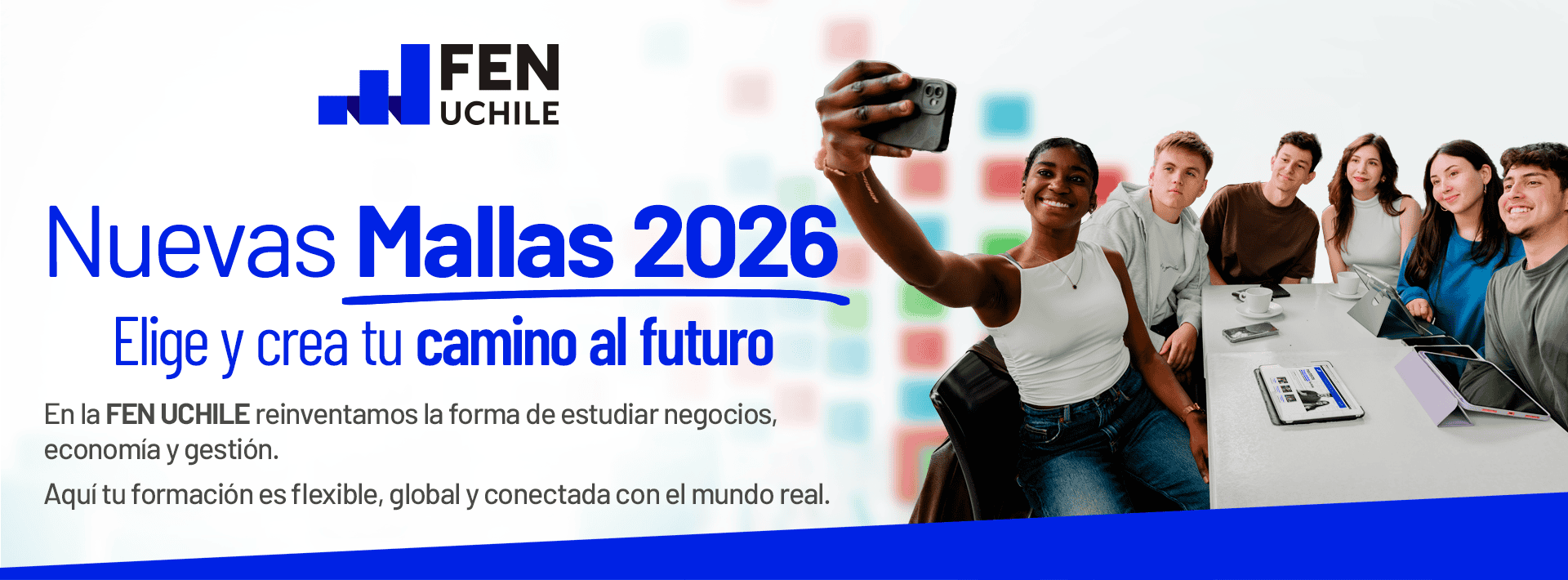 La FEN se transforma para ti. Nuevas mallas curriculares que te preparan para los desafíos del mercado global, dinámico y cambiante, con más flexibilidad, experiencias prácticas innovadoras y una conexión directa con las tendencias de vanguardia.